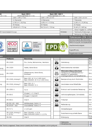 1. Produktfotos können je nach Bildschirmeinstellung und Aufnahmen-Situation variieren. Fotos zeigen lediglich eine optische Vorstellung des Bodens. Daher verweisen wir auf unseren Muster-Service, um Optik und Haptik des Bodens zu überprüfen.